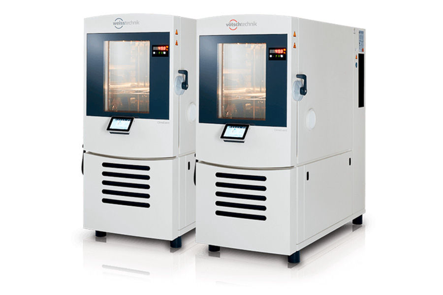 Equipos o instalaciones utilizadas en laboratorios, diseñadas para simular condiciones controladas de temperatura y humedad relativa en su interior y llevar a cabo estudios o ensayos con los que verificar el comportamiento, la durabilidad y calidad de productos y materiales expuestos a dichas condiciones climáticas.